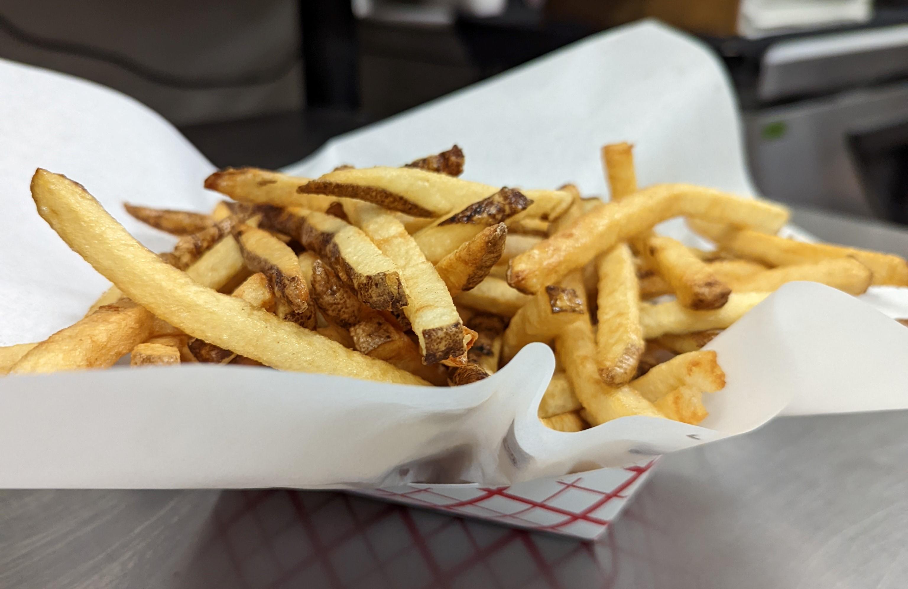 Kids Hamburger Combo comes with a side of french fries , apple sauce and your choice of drink for $10.
